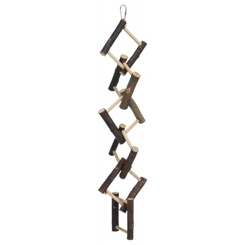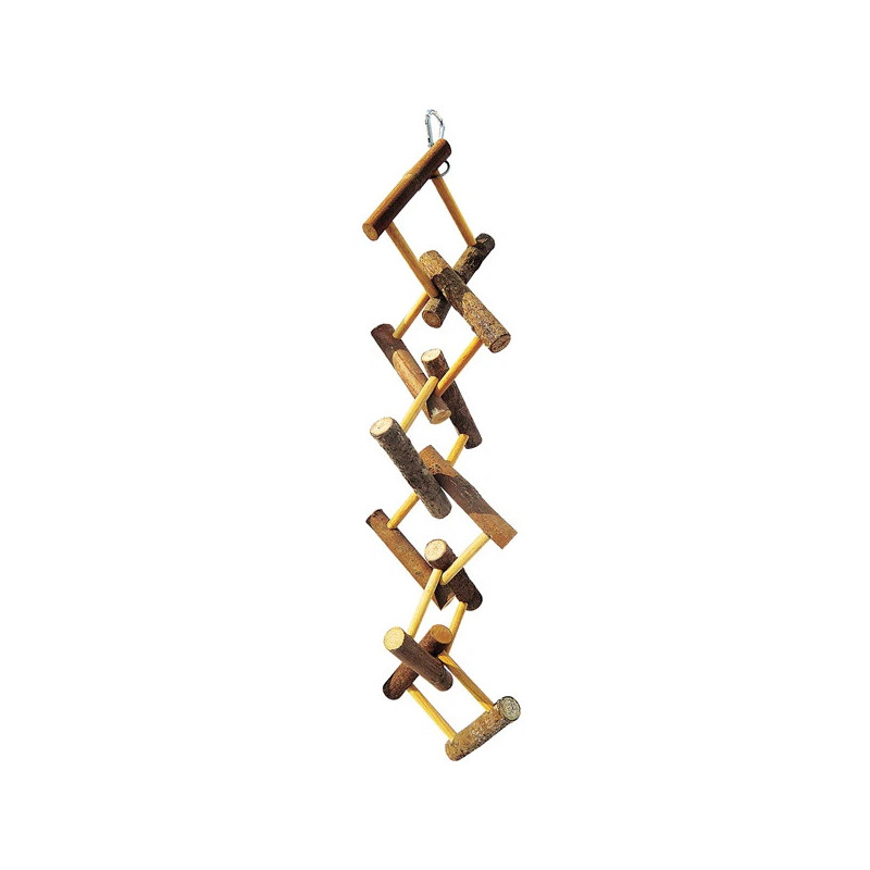 - Feita de madeira natural, esta escada oferece uma oportunidade para as aves expressarem comportamentos naturais de escalada, essenciais para o seu bem-estar.