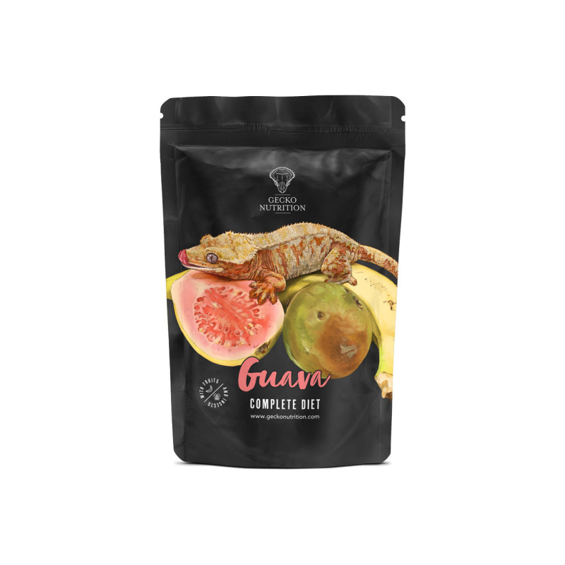 A Gecko Nutrition Guava é um alimento completo insecto-frugívoro, especialmente formulado para geckos crestados e outras espécies frugívoras. Combina o sabor tropical e refrescante da goiaba com insetos de alta qualidade, proporcionando uma dieta equilibrada, nutritiva e altamente palatável.