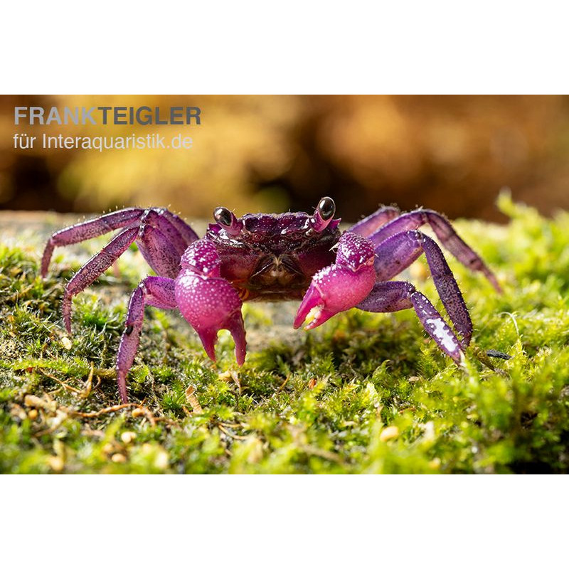 Popularmente conhecido como Caranguejo-Vampiro Pitaya / Lavanda / Violeta devido à sua coloração arroxeada ou rosada, especialmente visível na carapaça e nas pinças.
